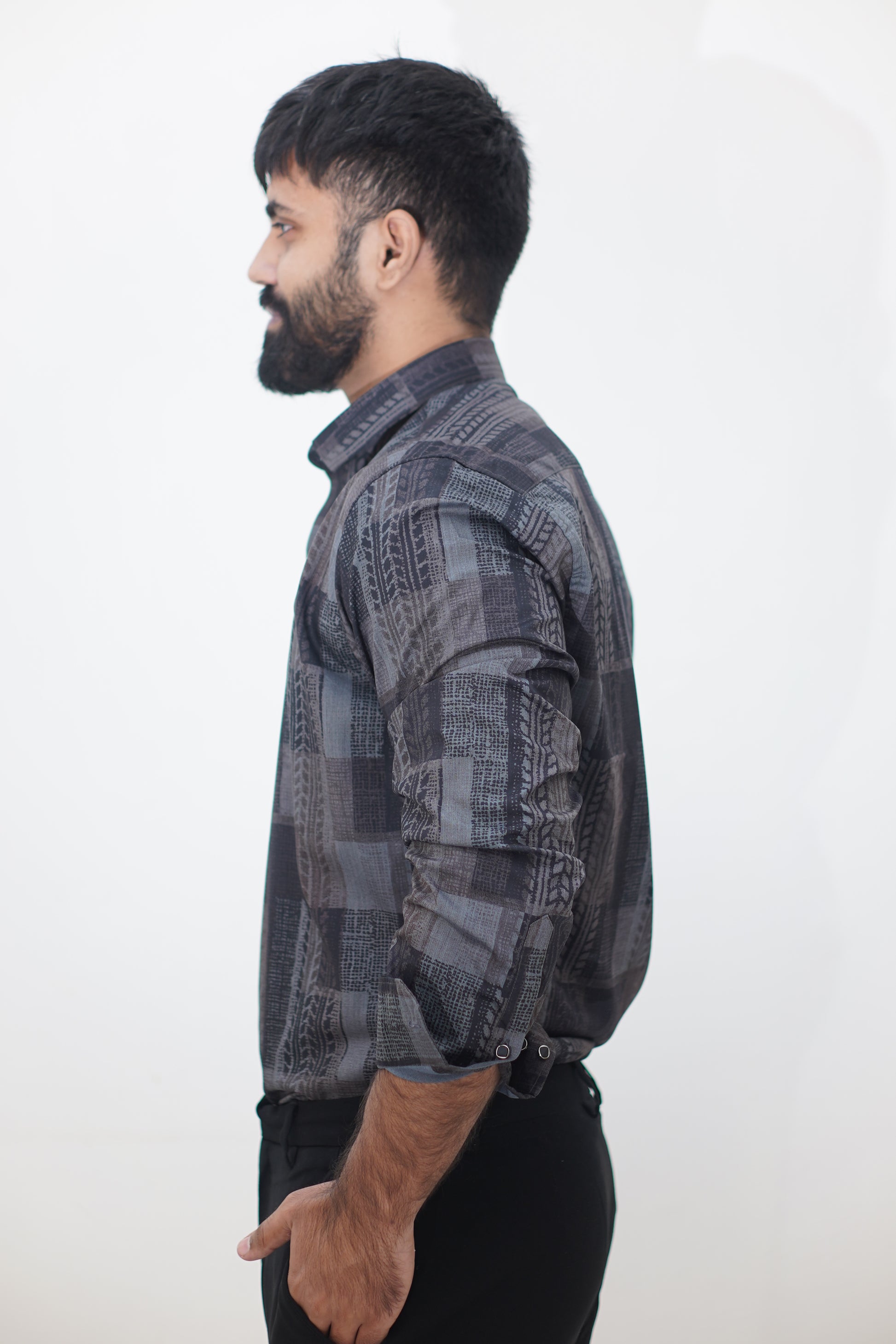Elevate your everyday wardrobe with our Geometric Print Cotton Shirt (Regular Fit) — a breathable, lightweight piece crafted from premium cotton for comfort and style. The modern black-and-grey geometric pattern adds a bold yet versatile touch, making this shirt perfect for pairing with trousers, chinos, or denim. A timeless choice for evenings, casual office looks, or weekend outings.