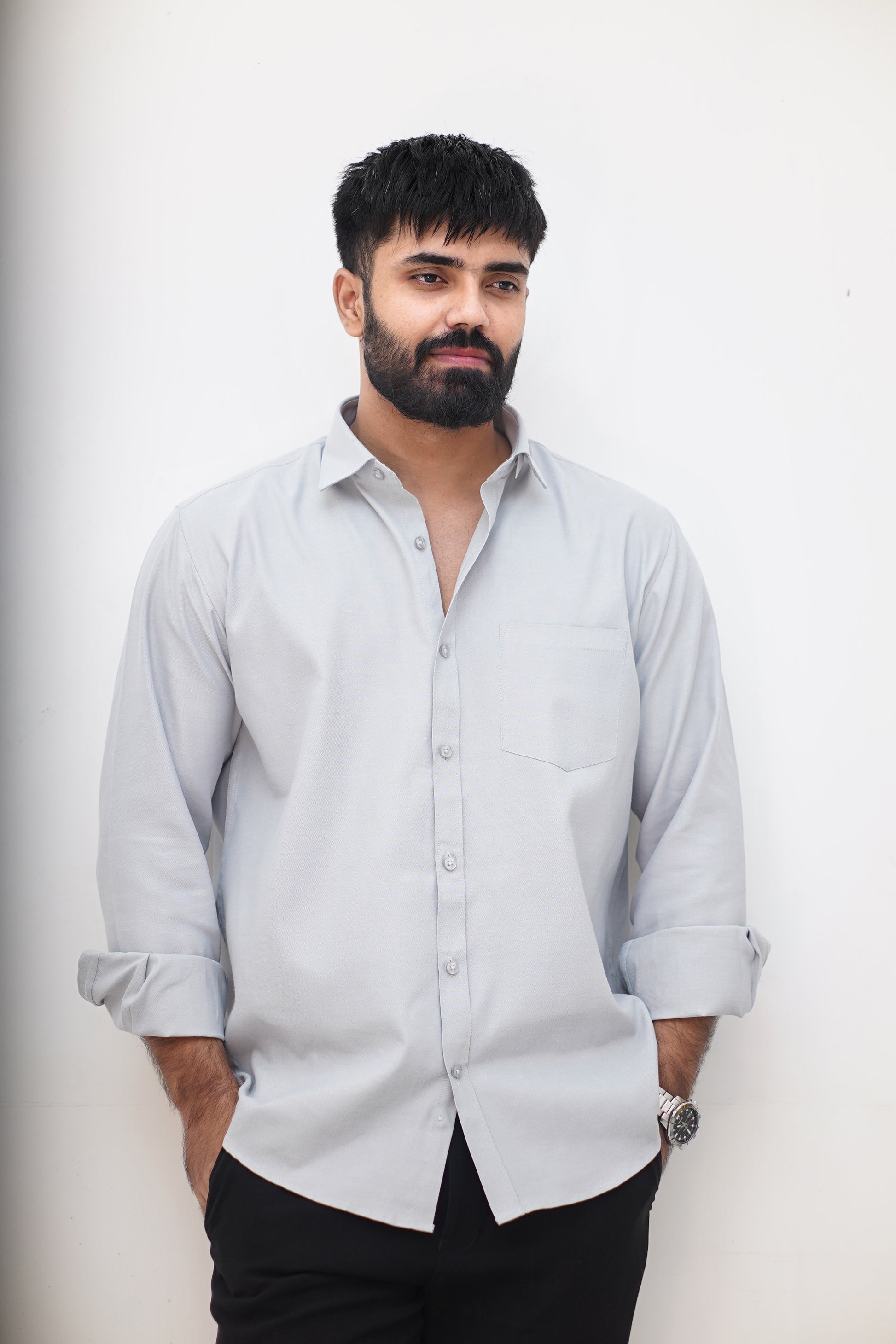 Minimal Light-Grey Cotton Shirt (Regular Fit)